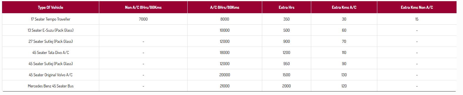 Rates for Mumbai Local (8hrs : 80 kms)